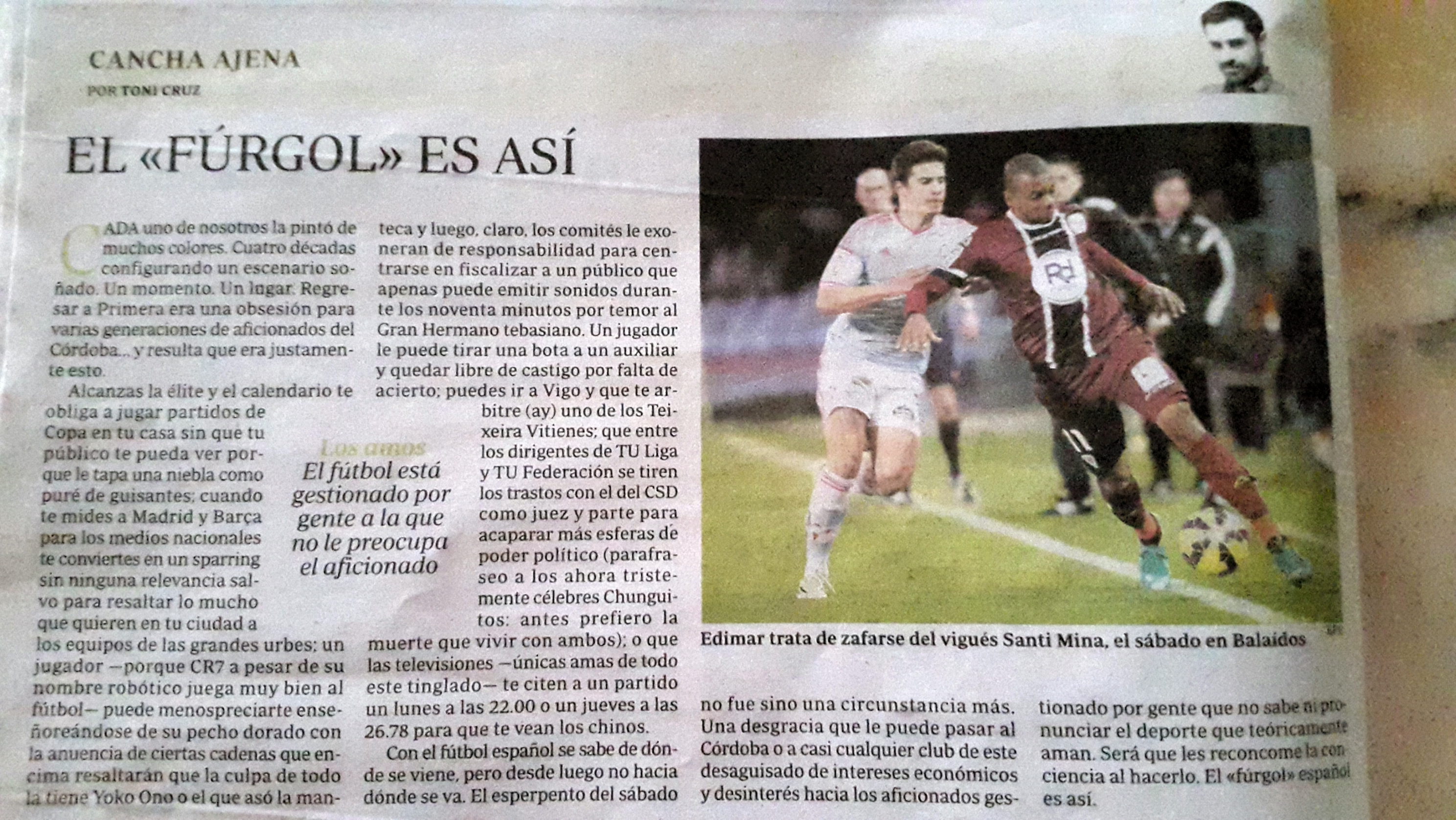 Con el fútbol español se sabe de dónde se viene, pero desde luego no hacia dónde se va. El esperpento del sábado no fue sino una circunstancia más. Una desgracia que le puede pasar al Córdoba o a casi cualquier club de este desaguisado de intereses económicos y desinterés hacia los aficionados gestionado por gente que no sabe ni pronunciar el deporte que teóricamente aman. Será que les reconcome la conciencia al hacerlo. El fúrgol español es así.