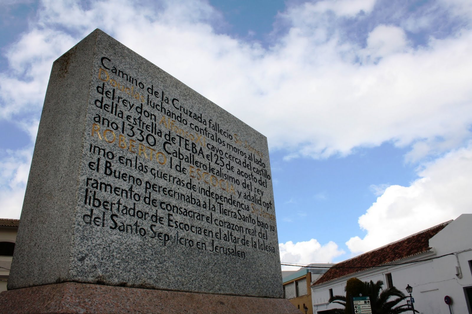 Existe en la Plaza de España de Teba un monolito de piedra que alude al rey escocés Robert de Bruce y a su fiel servidor, el caballero sir James Douglas, el protagonista de esta historia.