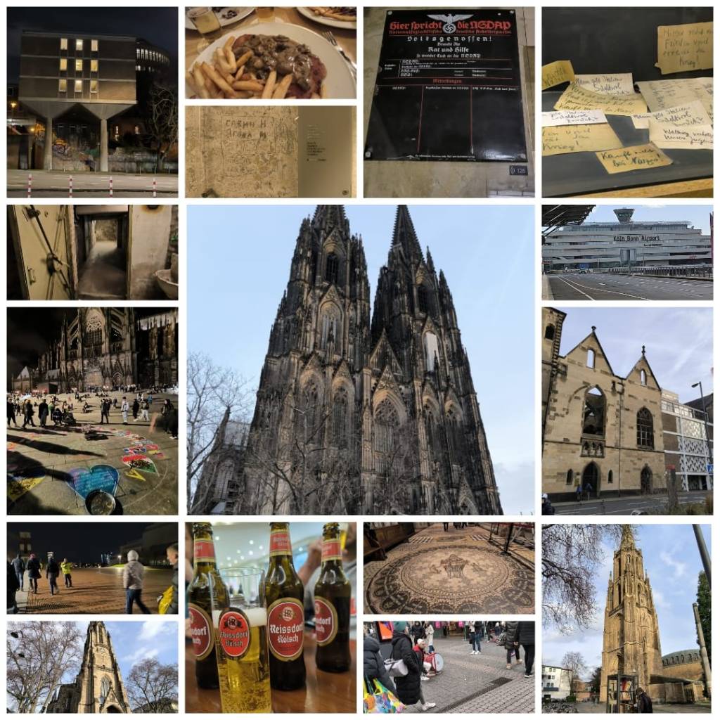 Nos quedaba hora y media de margen para visitar el DokuZentrum de Colonia, que está donde la Gestapo impuso su terrorífico orden en la ciudad desde que se lo comprara a un comerciante católico llamado Leopold Dahmen en el 34. El edificio sobrevivió, menuda paradoja, muy bien a la Guerra y por eso permite evocar con facilidad. Las tres plantas superiores explican y las dos subterráneas sobrecogen. En las mazmorras todavía se pueden leer los mensajes de los condenados. Retraté los mensajes de unos resistentes escritos en papel: “Kauft nich bei Nazis!” (“No compréis a los nazis”, emulando al “Kauft nich bei Juden” de los seguidores del del bigotito). También me caló la inscripción de dos soldados soviéticos llamados Savin y Yagoda: “Desde el 13 de enero del 44 hasta que nos hayan colgado”. Los alemanes usan múltiples términos para su necesidad de recordar para olvidar su pasado: “Vergangenheitsbewältigung (asunción del pasado)”, “Vergangenheitaufarbeitung (procesamiento del pasado)”, “Erinnerungskultur (cultura de la memoria)” y Kolektivschuld (culpa colectiva)”. Como para ellos, que casi todos tienen el retrato de un abuelo SS o de la Wehrmacht, hablar de “aquello” es tabú, encierran sus miedos a revivirlo en museos. Y no me parece mal.