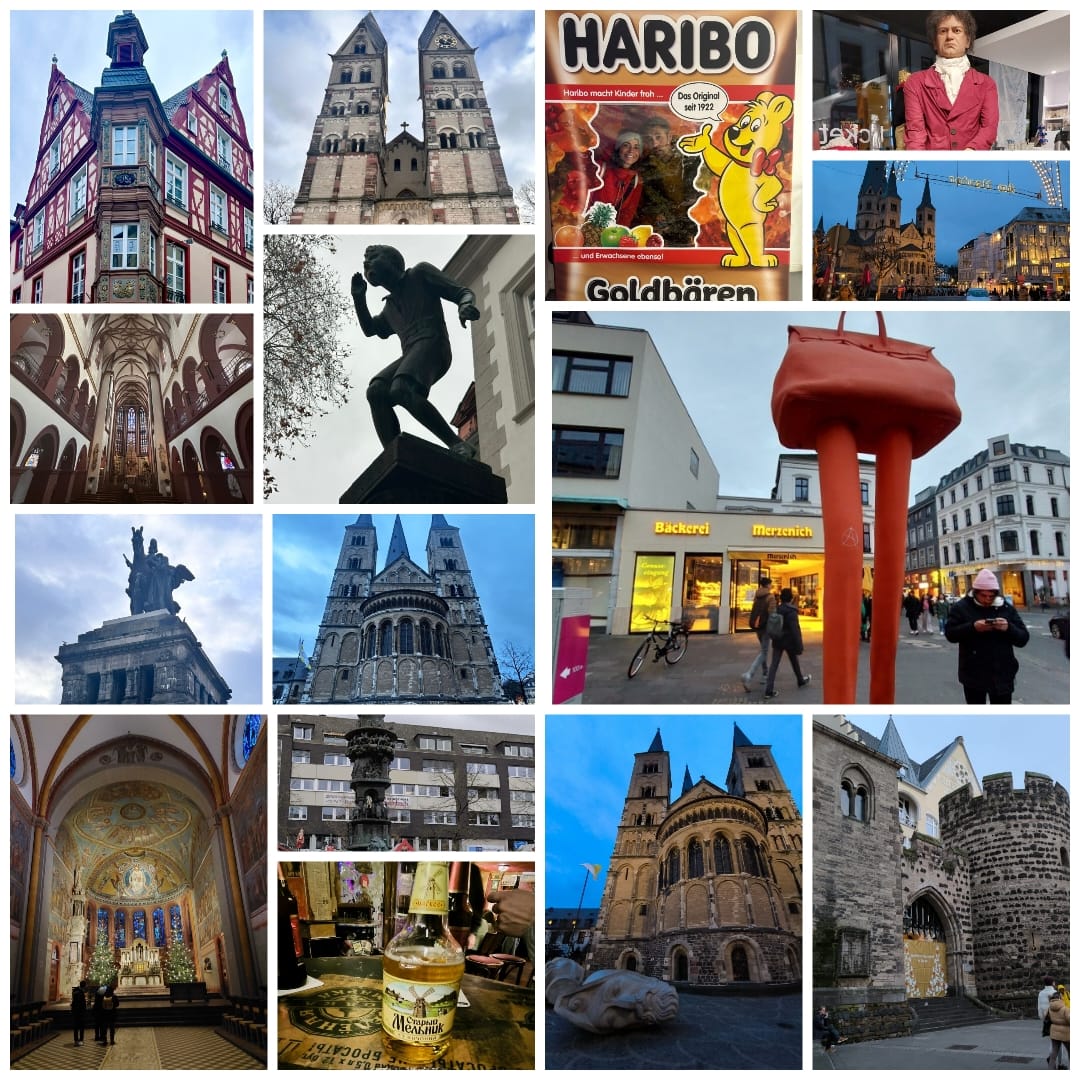 Tras ver la Basílica de San Kantor, la FlorinsKirche y la Liebfrauenkirche dejamos para otro viaje el ascenso en el teleférico al Ehrenbreinstein porque se hacía de noche y queríamos conocer también Bonn. Viajamos gratis porque no pudimos pagar el billete en un tren atestado y con una calefacción mefistofélica. Los alemanes, que en sus cositas de reciclaje son un coñazo, no tienen mesura al darle al botón del calor. No había despacho o habitación a la que no le sobraran varios grados de temperatura. Otra incongruencia más de la nación que dice ser tan verde.