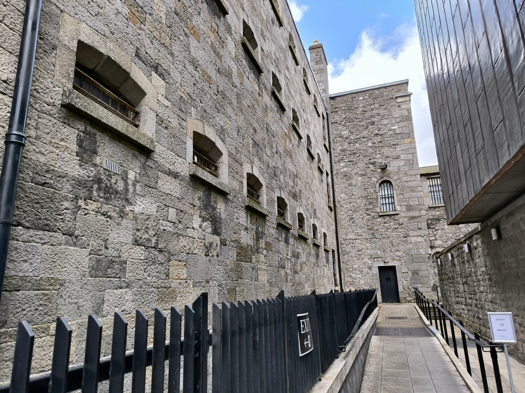 Rectificamos tomando un taxi hasta Kilmainham Gaol, que era el último imprescindible en nuestra lista. Empezó a llover y nos vino bien sentir las gotas desde la comodidad del interior de un vehículo. Cuando nos acercamos a la puerta, el responsable nos preguntó si habíamos comprado la entrada. Lamentando la falta de previsión, le replicamos que pensábamos que no hacía falta y aproveché para comentarle que ya había estado en 2008 allí y que pretendía que Lole también lo conociera. Bien fuera porque el señor nos vio salir del taxi y ya apreció que había un interés real por entrar, bien por su generosidad irlandesa… el caso es que nos dio un ticket que le sobró y nos ofreció la posibilidad de acceder. Lo más sorprendente es que, salvo que lo hubiésemos visto mal, la entrada costaba 15 euros y nosotros no pagamos nada. Es lo que tienen los viajes, que en un rato te dan y en otro te quitan.