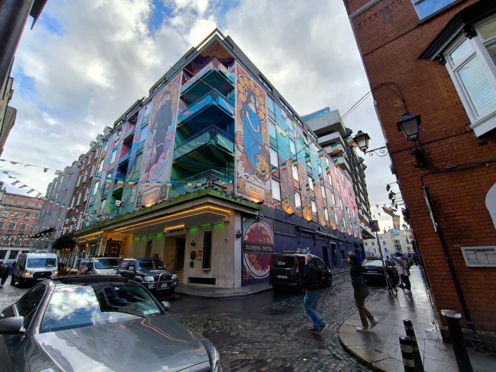 Se nos escapaba el tiempo de las manos. Tomamos un autobús de dos plantas y nos dirigimos de vuelta a Grafton con la intención de almorzar y hacer las últimas compras. Acertamos escogiendo el restaurante del Blooms Hotel. Un pub muy joyceano con unos preciosos murales dedicados a Stephen Dedalus y a Molly Bloom, dos de los protagonistas principales del “Ulises”. José María Valverde, autor de una de las mejores traducciones de esa magna obra, cuenta que, una noche de junio de 1904, poco tiempo después de conocer a su amor Nora, paseaba el joven Joyce por la calle cuando se le ocurrió piropear a una muchacha con la que se encontró, sin darse cuenta de que venía acompañada por un militar. Recibió un golpe y se desplomó, siendo atendido entonces por un judío de la ciudad, famoso por las infidelidades de su mujer. Eso pudo gestar la trama del “Ulises”.