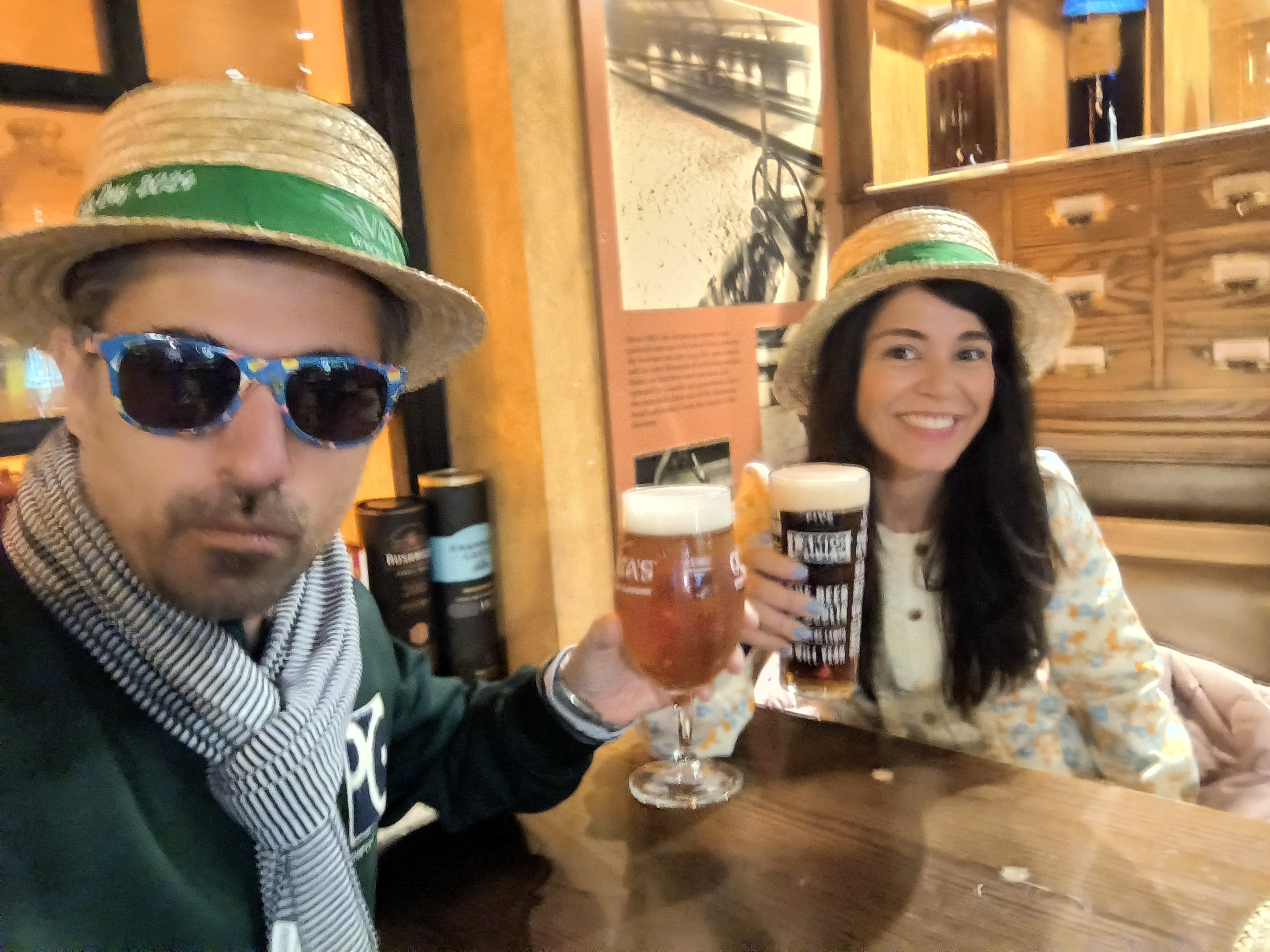 Devoramos un surtido de quesos irlandeses delicioso y una contundente hamburguesa. Todo acompañado, claro, de buena cerveza IPA. Mientras comíamos veíamos un ininteligble partido de cricket de la liga de Bangalore. Todos los camareros parecían pakistaníes. El surrealista cuadro lo completamos ataviándonos con unos gorritos de paja muy de 1904 que sobraron de San Patricio y ya estaban preparados para el “Bloomsday”. En un rincón de mi casa se encuentran ahora.